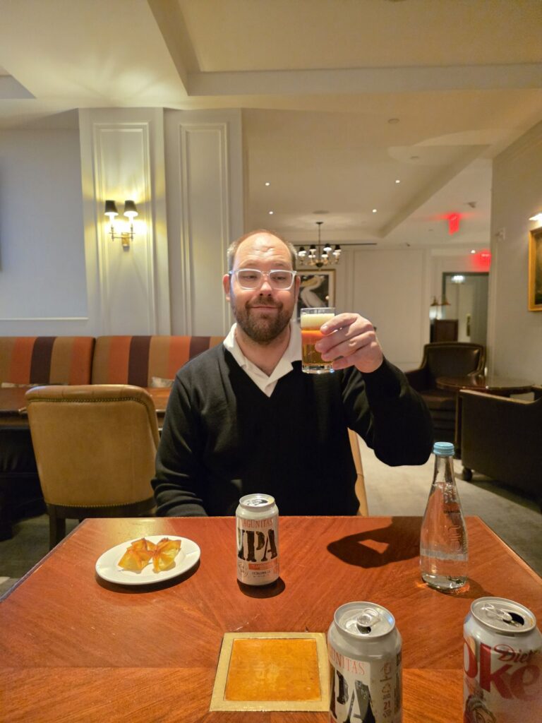 A quick stop at the club lounge for a drink, the hotel bar for a shared chicken sandwich and salad, and then it was off to our evening relaxation…
