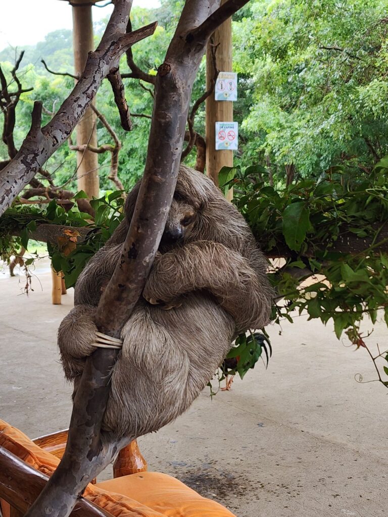 We started the morning with a hot tub soak and breakfast before heading off the ship to explore the port area. Our excursion was to Daniel Johnson’s Monkey and Sloth Hangout, and even though the government no longer allows guests to hold the sloths, it was still amazing to see them up close. It was very cold so they were keen to sleep. The birds and monkeys were incredibly interesting.