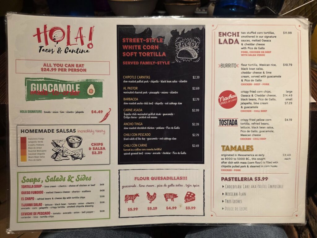 For dinner, we had Hola Tacos, the all‑you‑can‑eat Mexican restaurant, and the food was delicious. By the time we finished around 7pm, we were ready for a very early night – asleep by 8!
