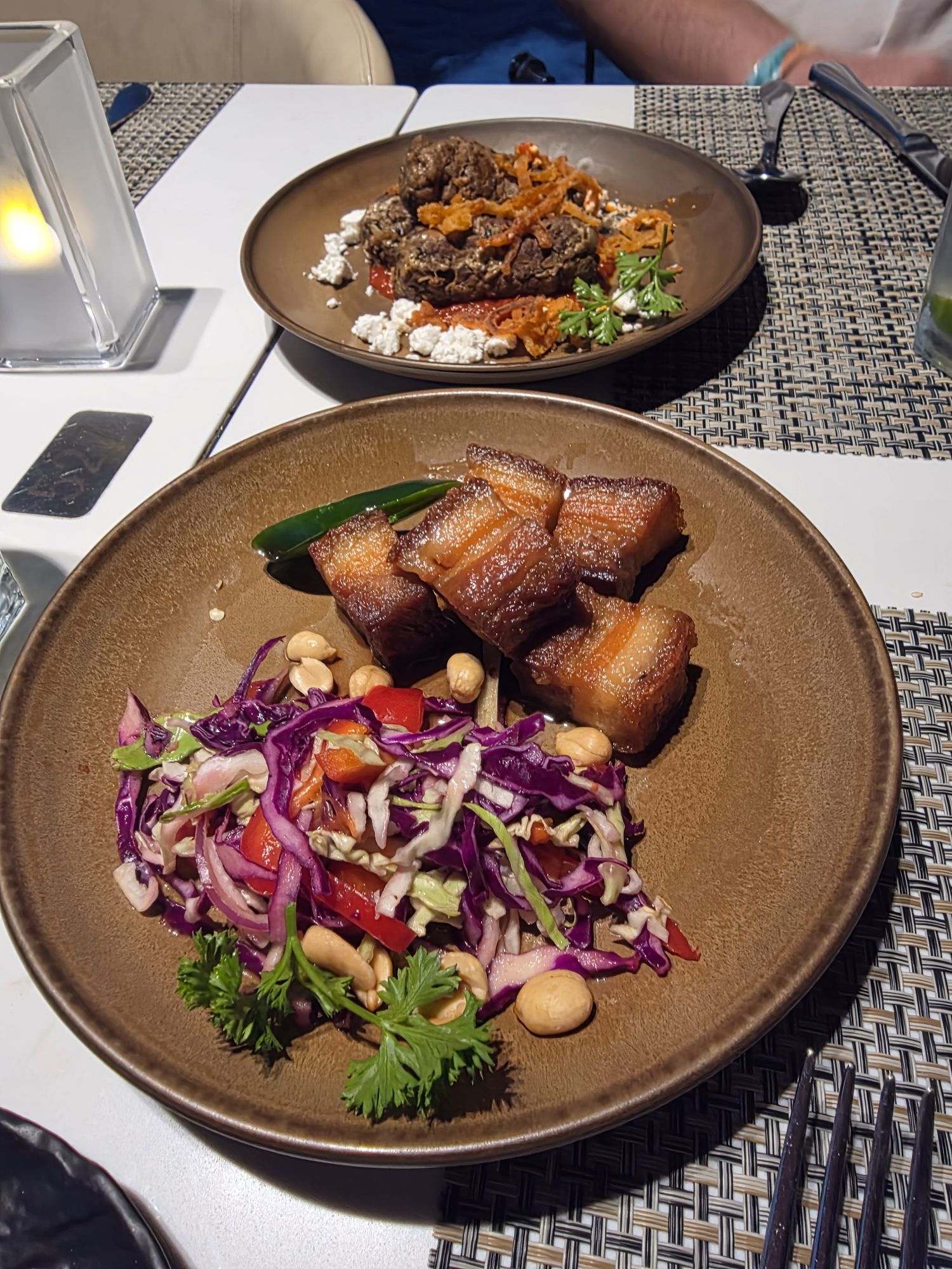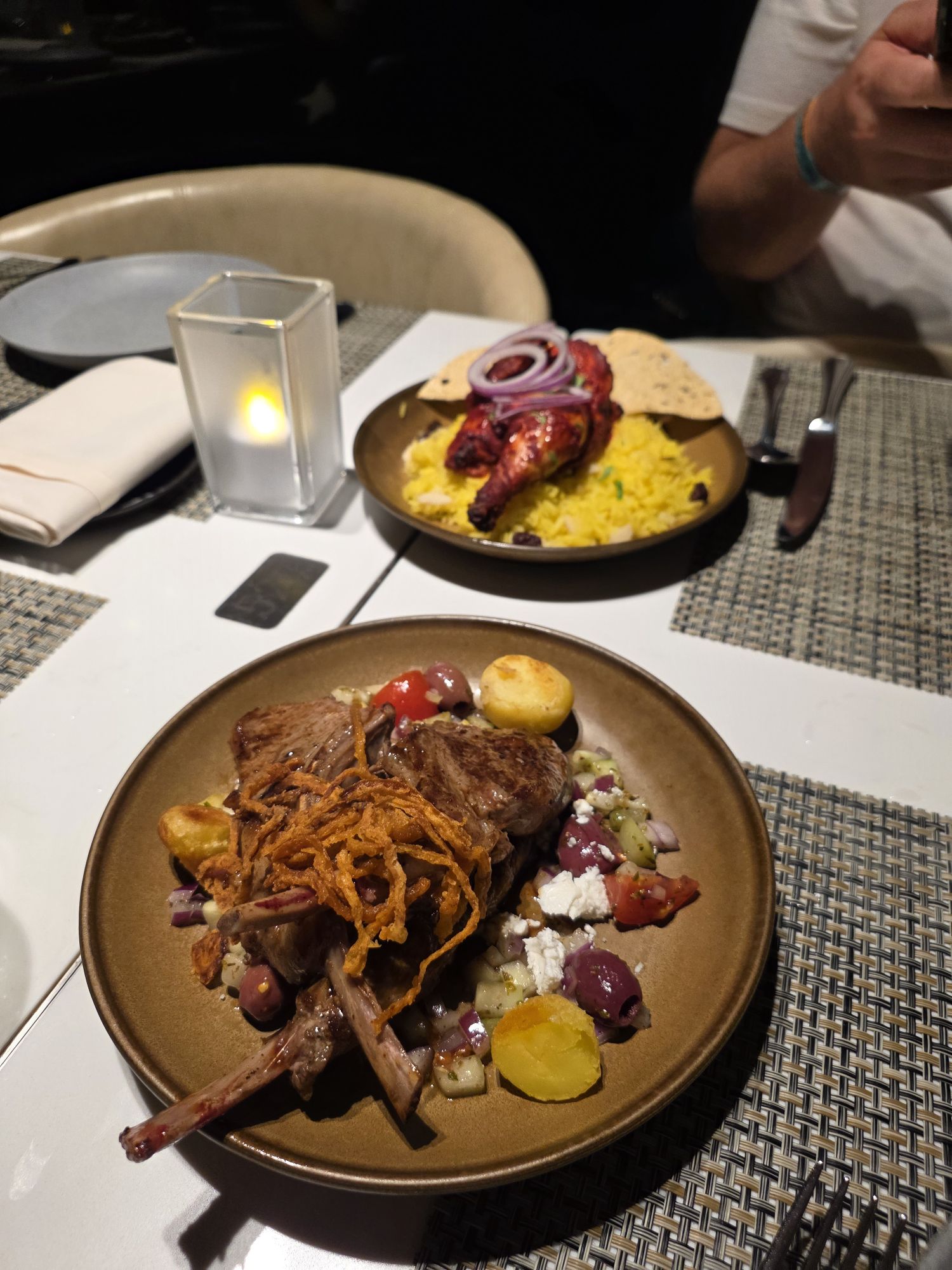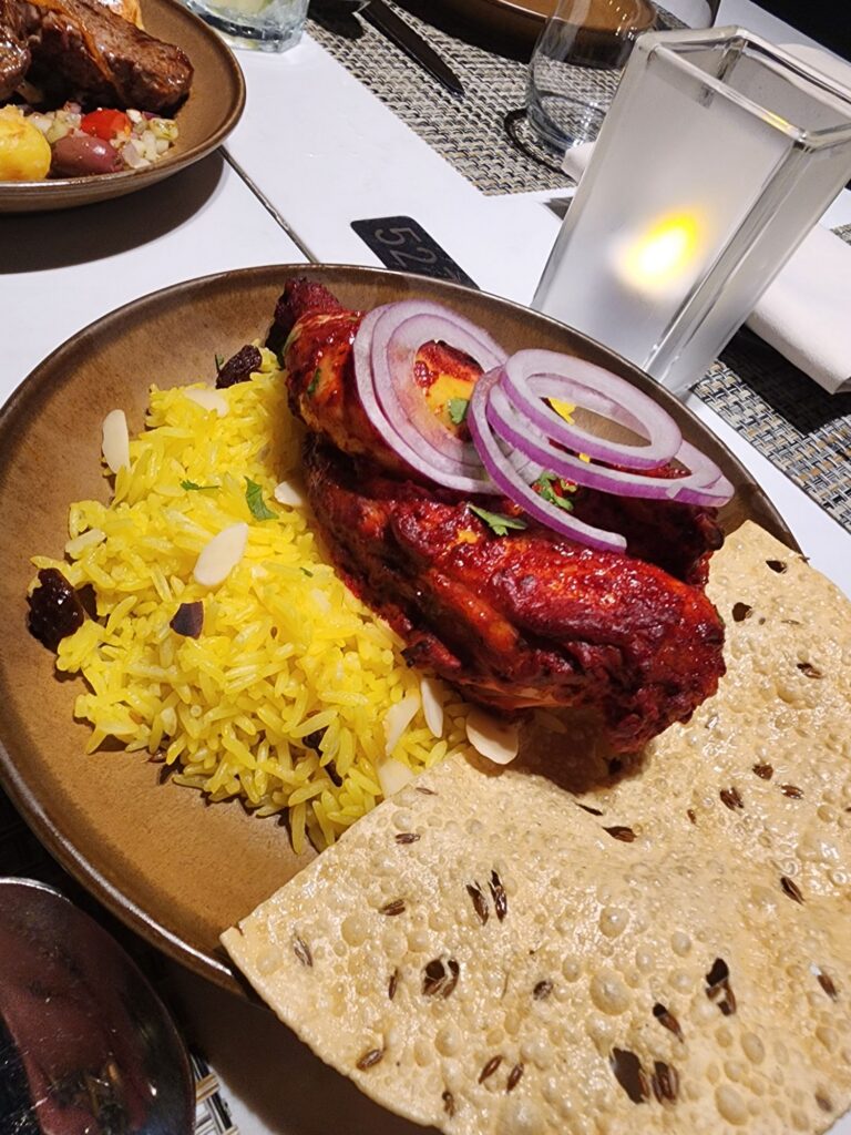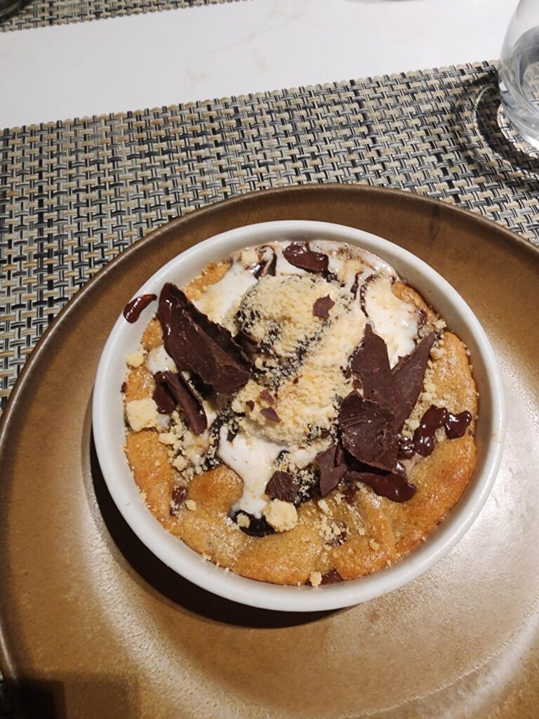 Dinner was at La Brasserie, where we started with pork belly bites and beef/lamb koftas. I ordered the lamb and Tim went for the tandoori chicken. Dessert was a warm cookie topped with ice cream, and it was absolutely delicious.
